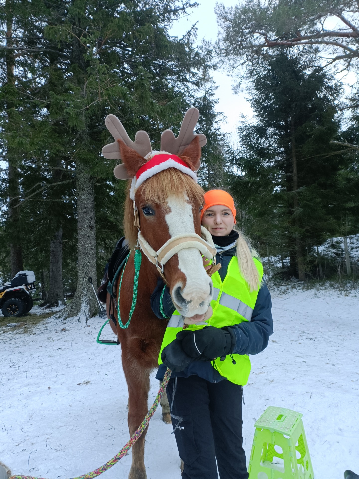 I sommerhalvåret har vi hester på beite i juletrefeltet som hjelper oss å holde ugresset ned. Vi tilbyr hesteridning for barna på juletrehogstdagene. Dette er inkludert i juletreprisen.